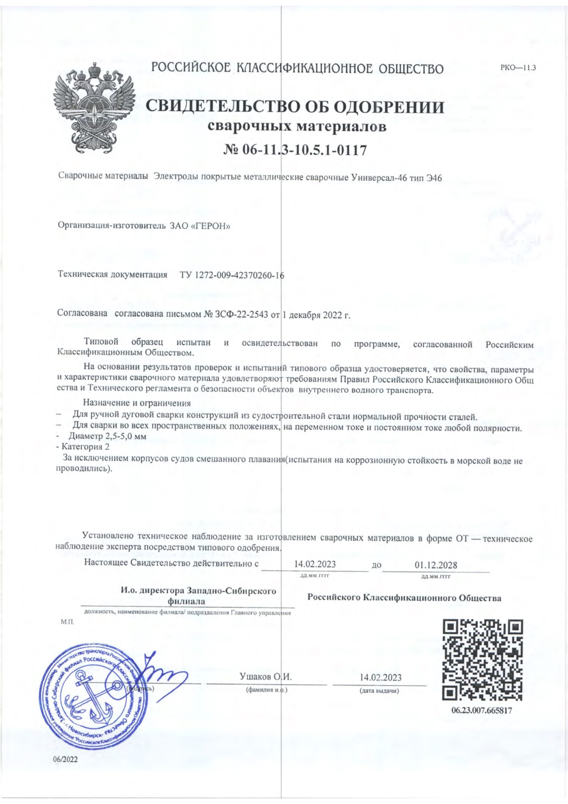 - Свидетельство об одобрении сварочных материалов (Универсал-46) — PDF