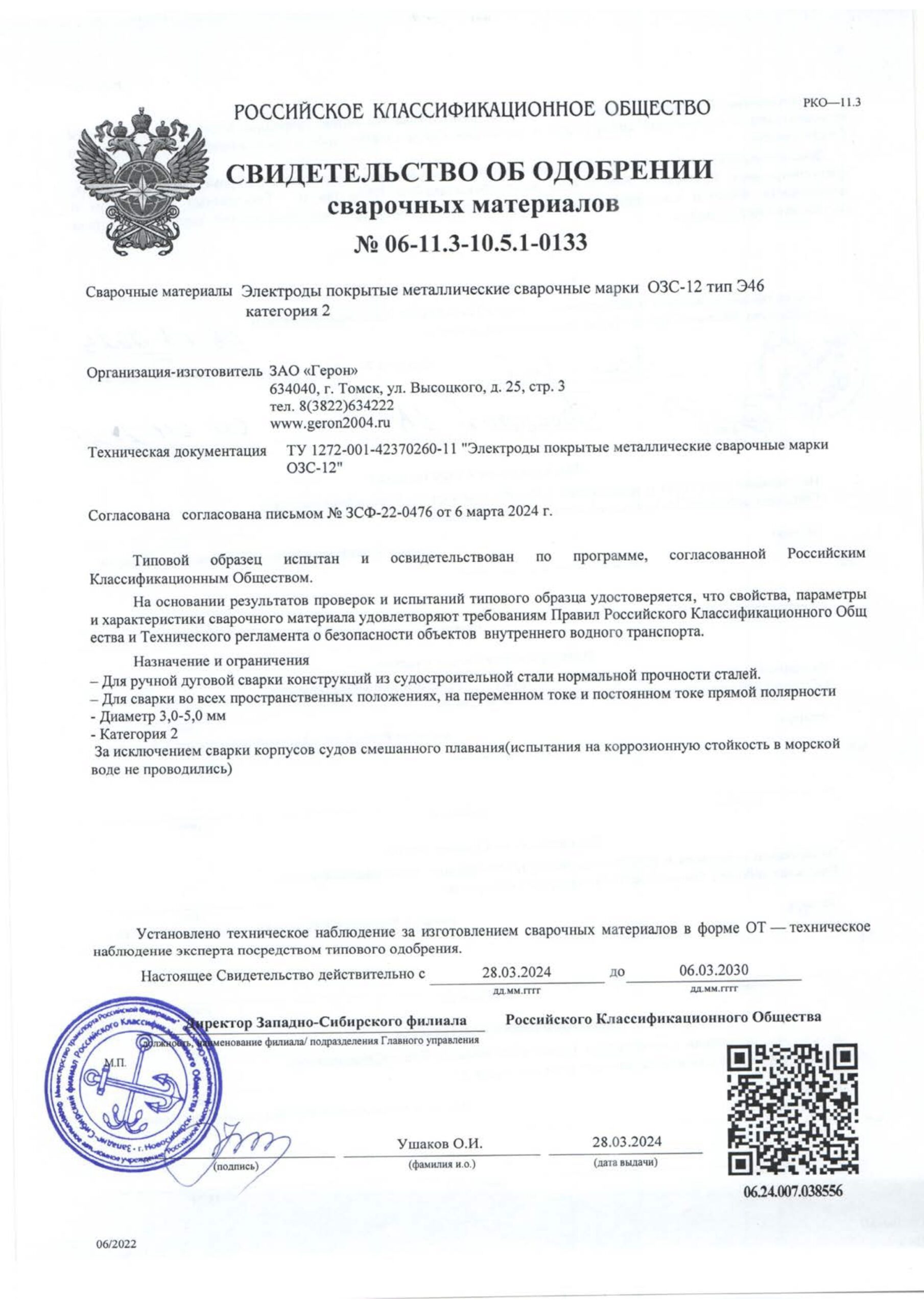 - Свидетельство об одобрении сварочных материалов (ОЗС-12) — PDF